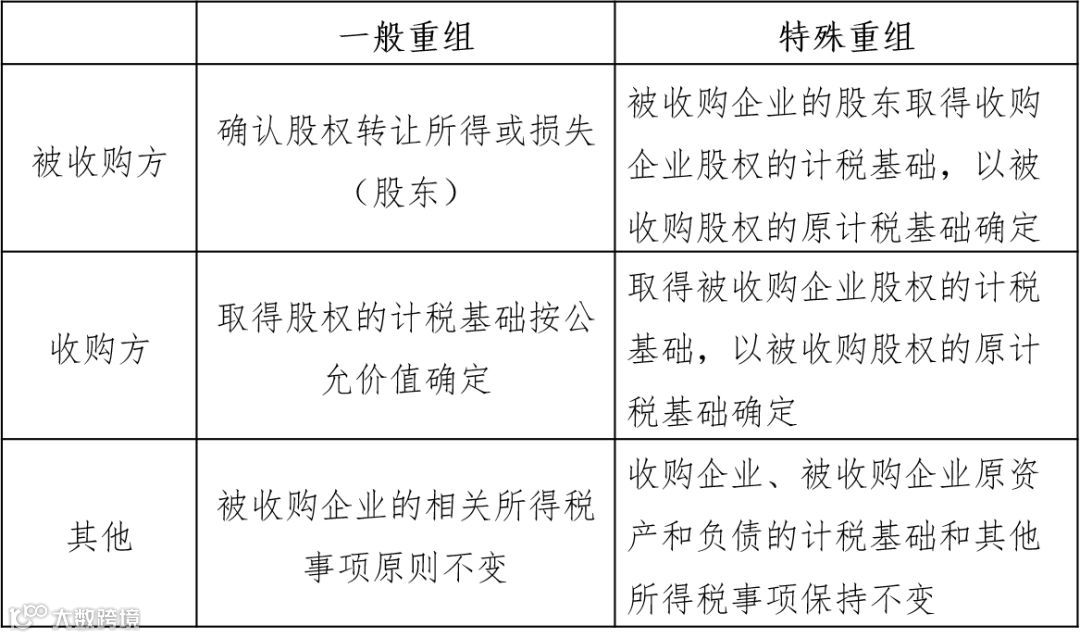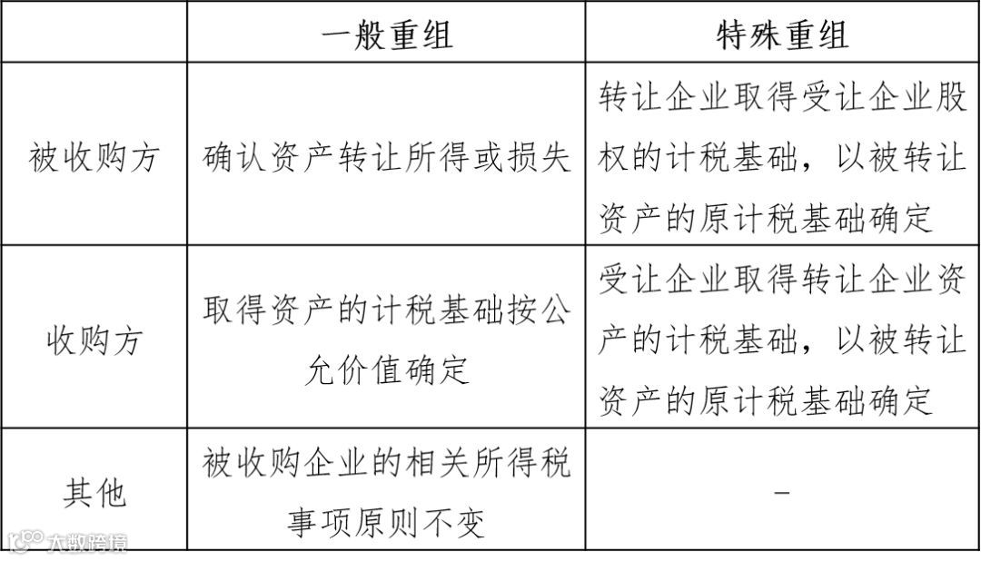 不同并购方式下,最主要的税收便是企业所得税。对于企业所得税有两种处理方式:一般税务处理和特殊税务处理。