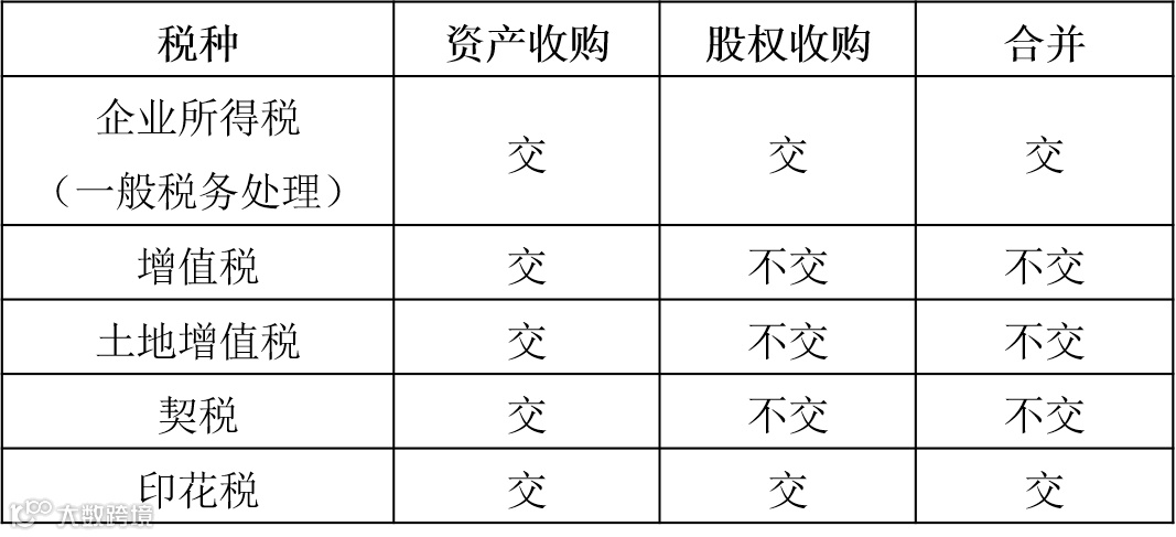 二、不同并购方式下涉及的税收种类