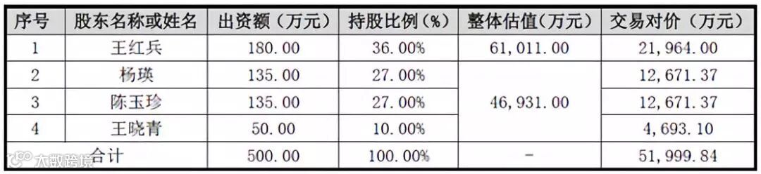 注:因仅王红兵承担业绩承诺,本次交易采取差额定价。