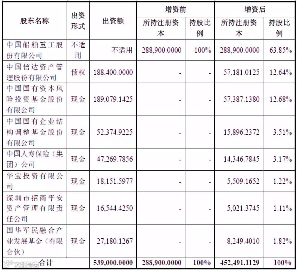 增资前后大船重工股东所持注册资本及持股比例情况表如下: