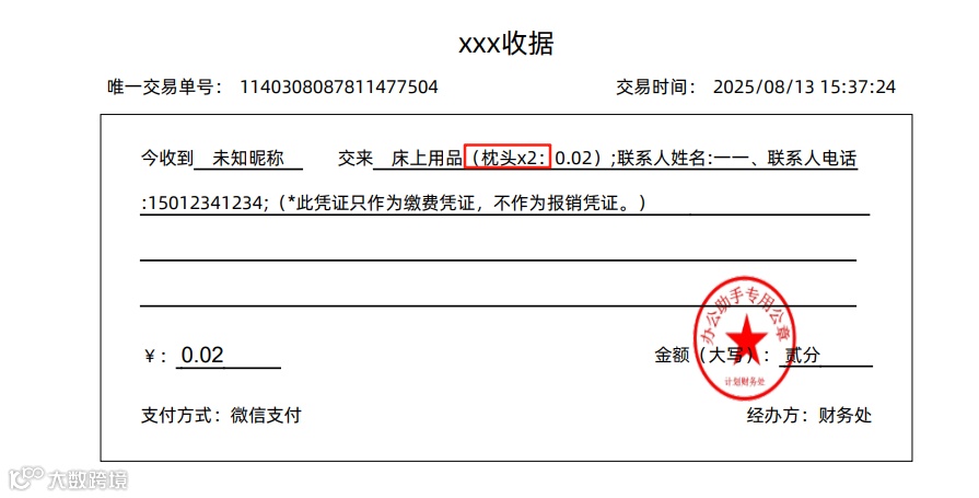 针对学校或机构将电子收据作为商品发放凭证的场景,校园寄售的电子收据新增展示商品购买数量。现场进行商品派发时,工作人员可直接依据收据上的商品数量派发,无需再单独通过后台核对确认,大幅提升商品派发的效率。
