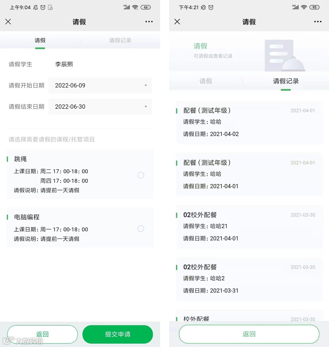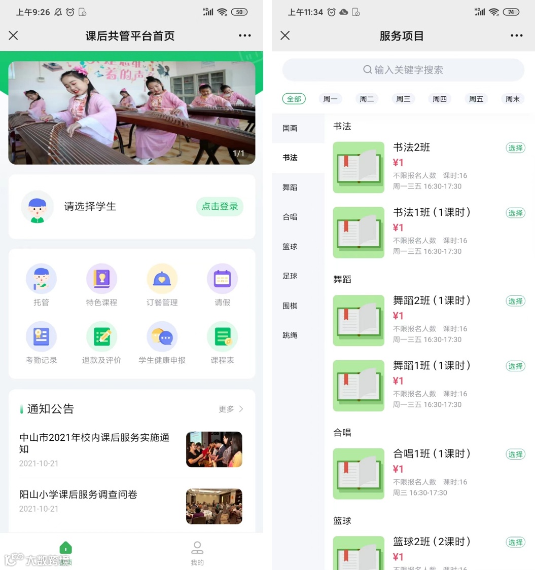 学校发布托管内容后,家长可在移动端选择合适的项目报名