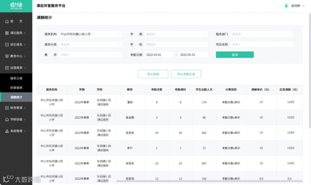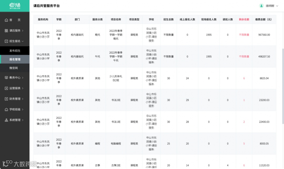 学校可以按年级、班级统计学生的报名情况,统计收费情况
