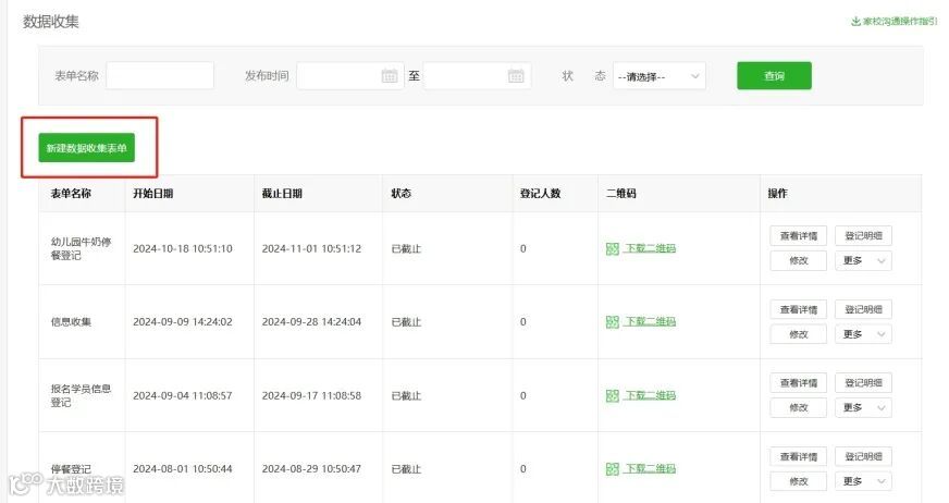 操作路径:校务管理-数据收集-新增数据收集表单