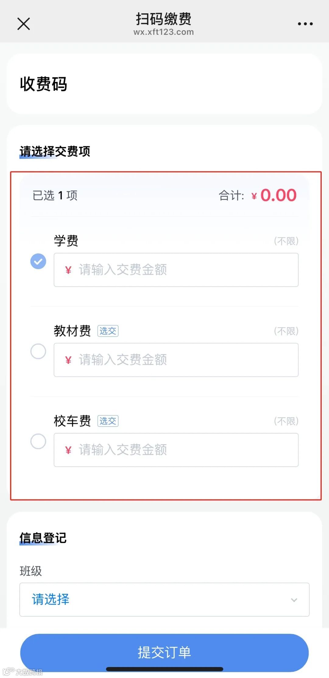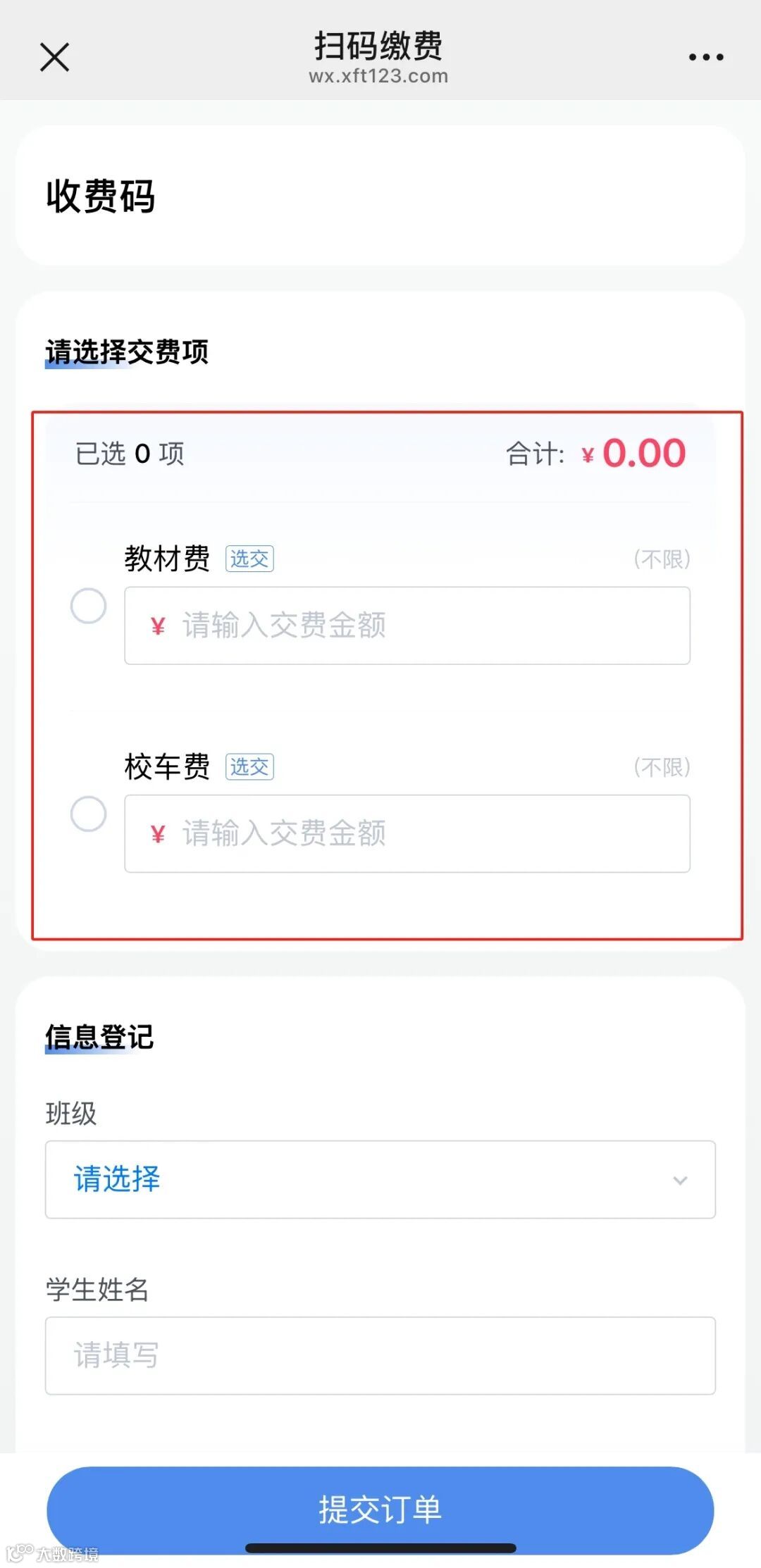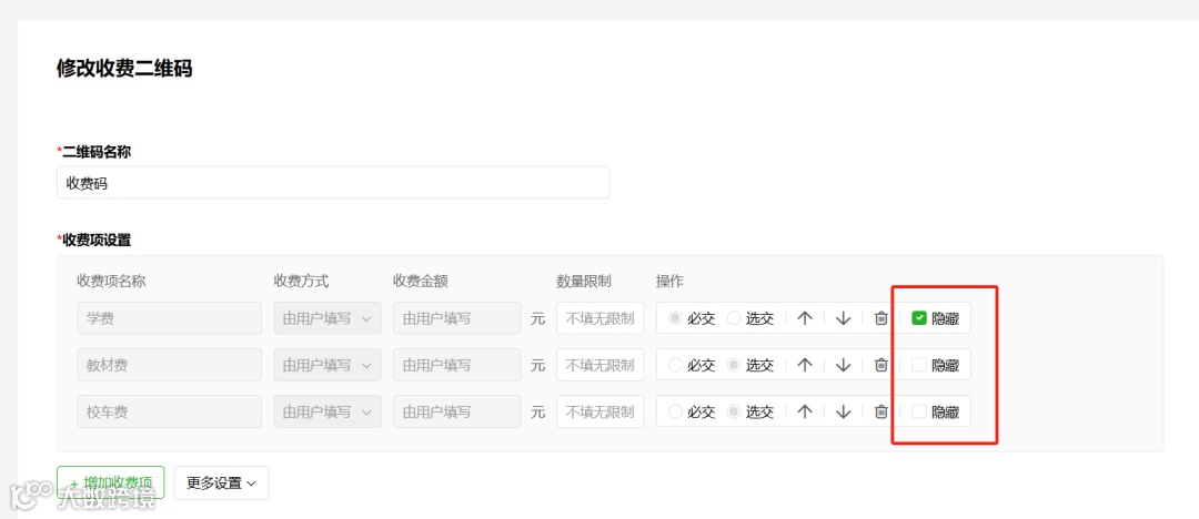 扫码收费支持隐藏收费项