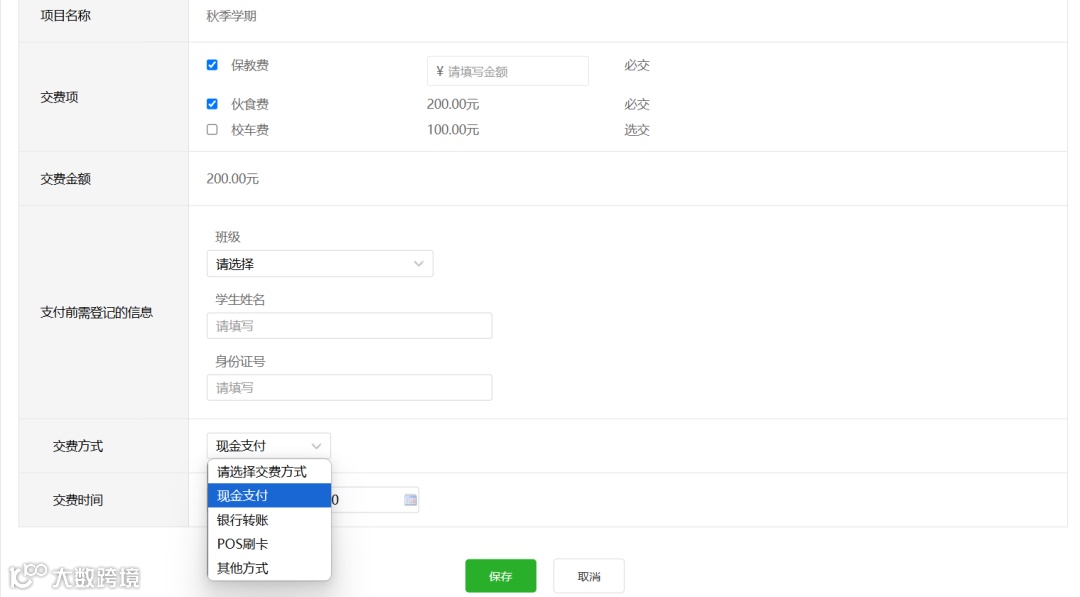 而用户填写金额方式则专为收款金额不一致的情况设计,按需支付的特性,让学校无需创建不同收费标准的收费项目,极大减少多余收费工作流程。