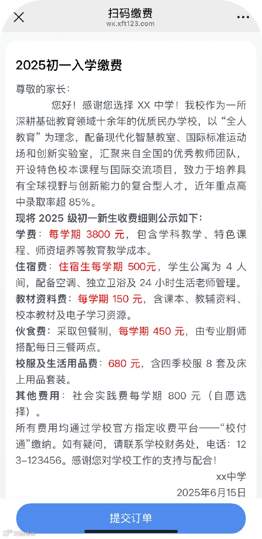 在统一收费标准的新生招录中,固定金额方式让家长扫码即见金额,一键支付,避免多付少付;