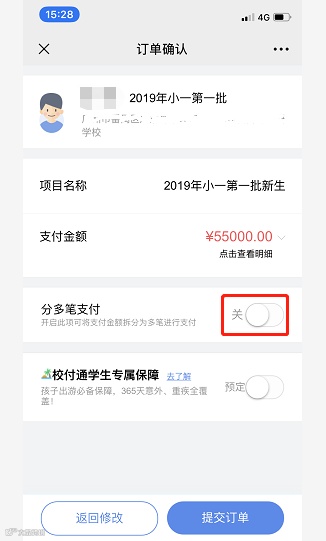 温馨提示:分笔支付后,必须在当天22:00点前完成所有拆分订单的支付,否则将不能继续支付剩余费用,已缴费用将原路退还(1-3个工作日)。次日有需要可再重新进行拆单支付。