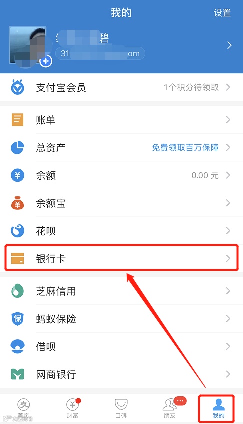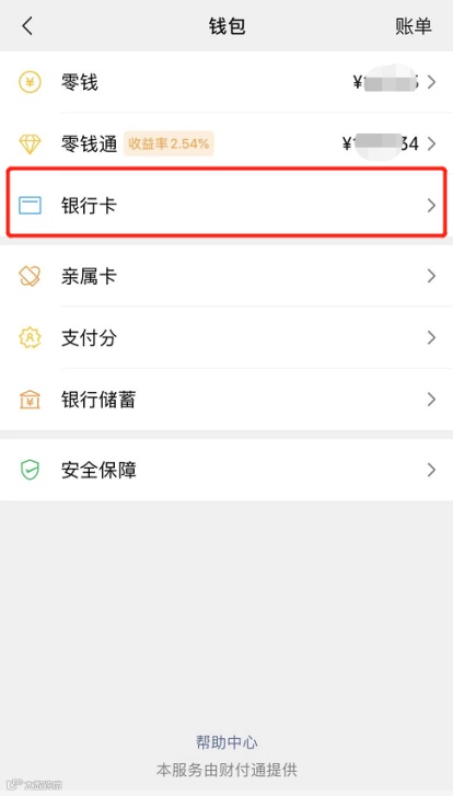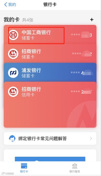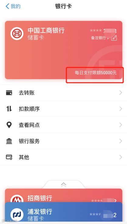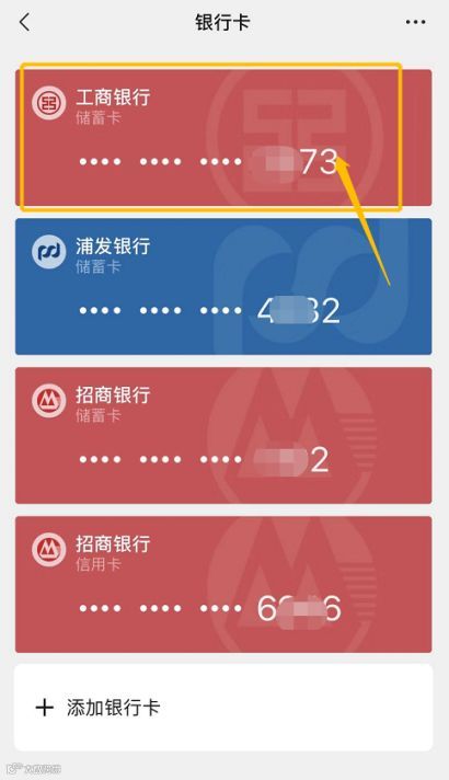 我->支付->钱包->银行卡--点击各银行卡查看