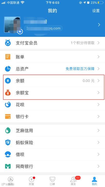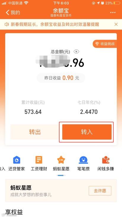 我的->余额/余额宝->充值/转入