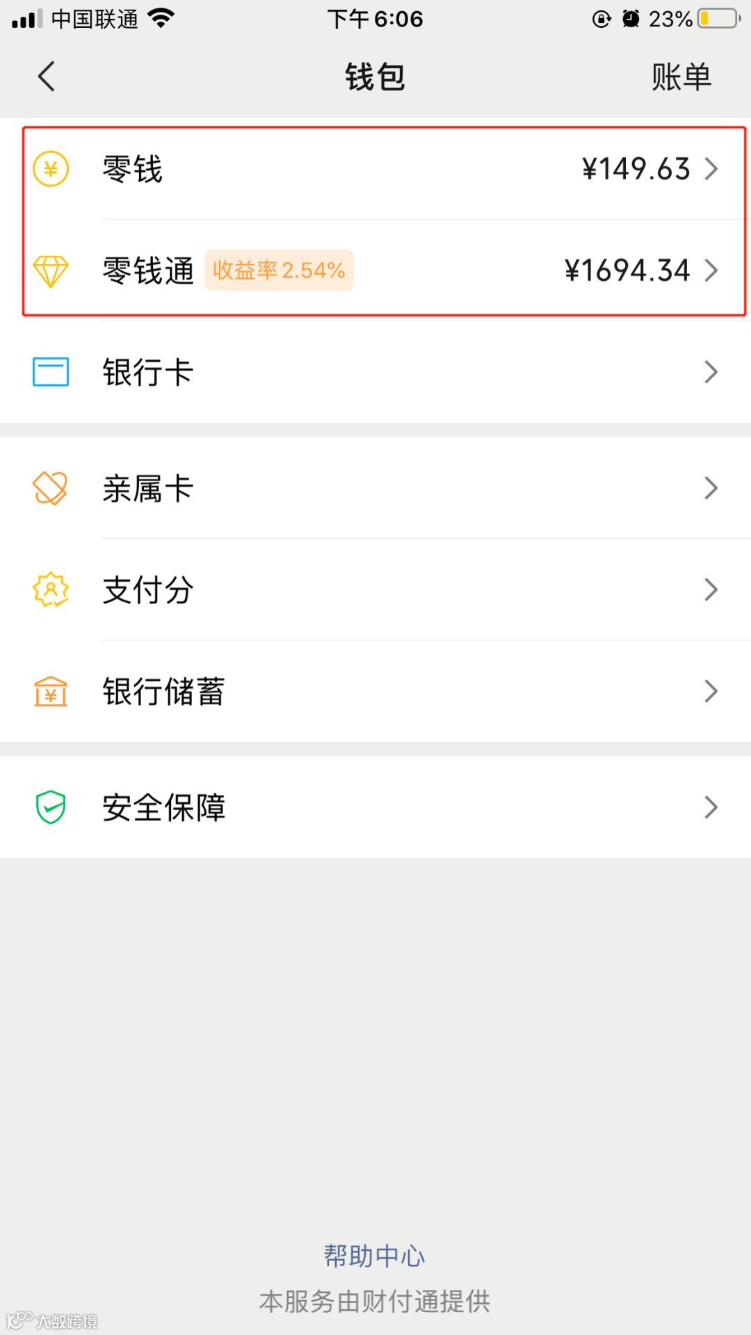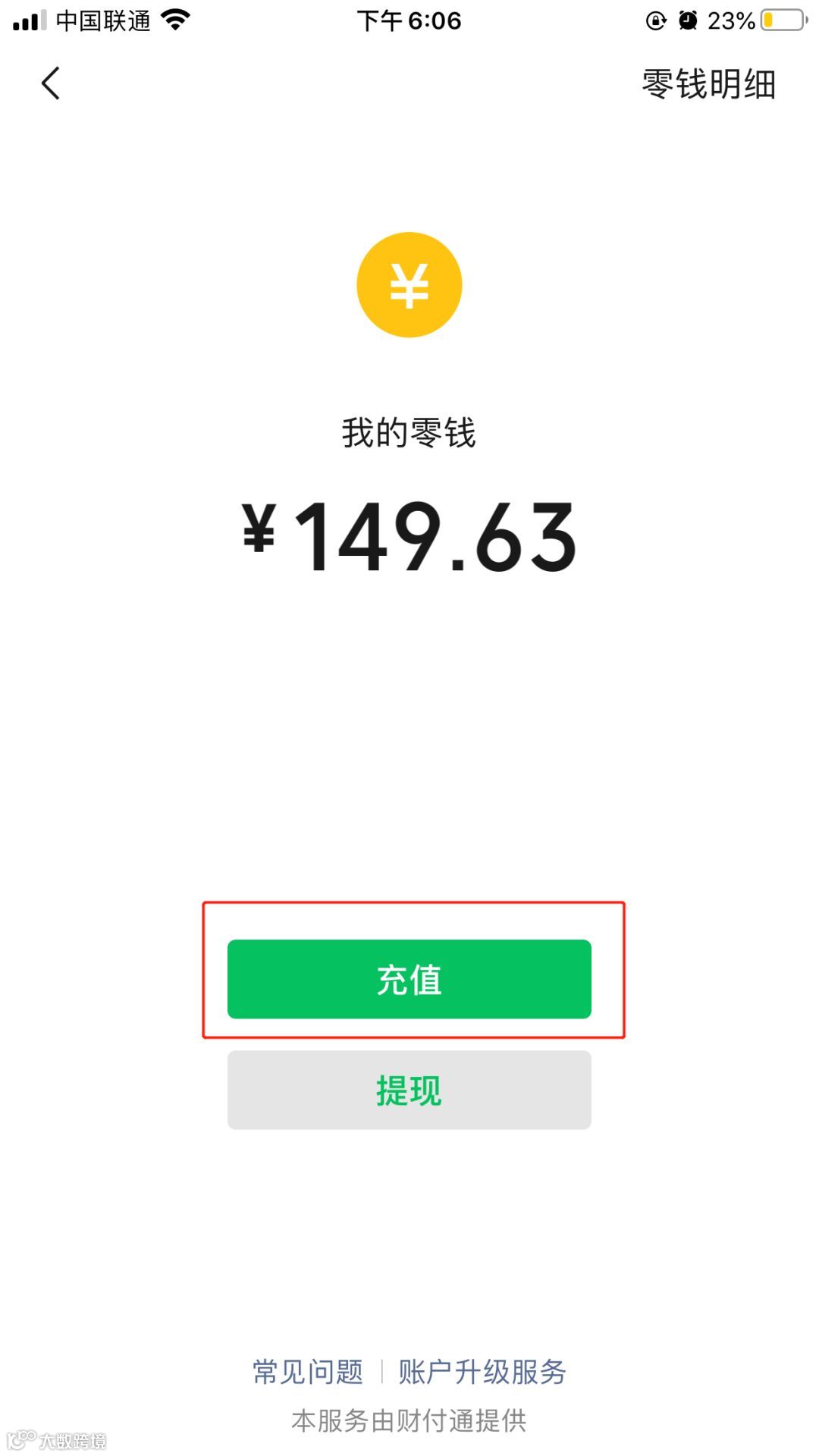 我->支付->钱包->零钱->充值/转入