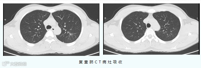 经过中西医结合对症治疗10天后,肺部CT等检查提示,患者的肺炎较之前明显吸收,目前已好转出院。