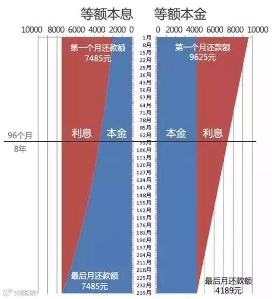 很多朋友看到30年,等额本息的总利息是421.5万,等额本金332.1万,尼玛,坑爹啊,银行收了我们这么多利息。