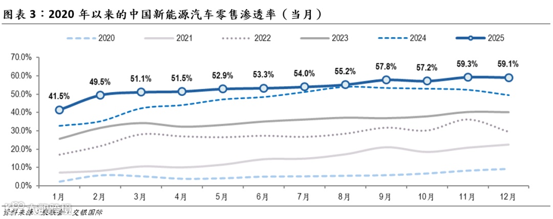 新能源延续增势,12月新能源渗透率59.1%
