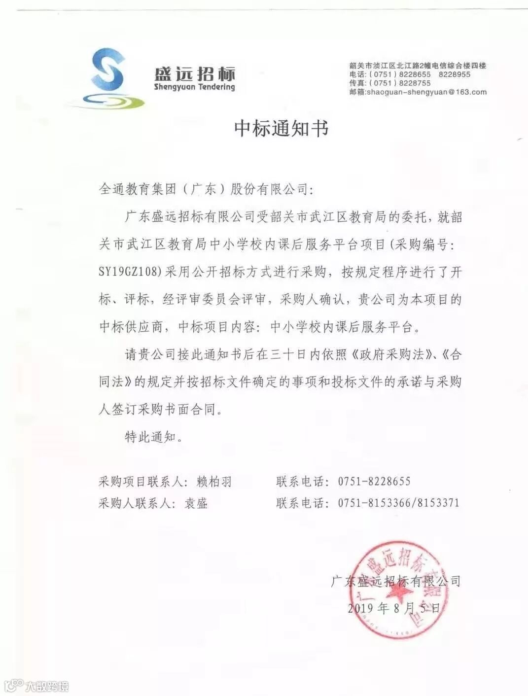 本项目由全通教育集团(广东)股份有限公司中标,我方作为课后服务平台提供商,基于教育主管部门的“课后托管、共管服务”相关指导意见,通过以“教育+互联网+支付”为技术搭建的课后共管服务平台,提升韶关市武江区学校校内课后托管、配餐、素质教育课程的服务效率。