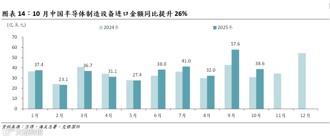 半导体制造设备进口额10月同比保持高速增长