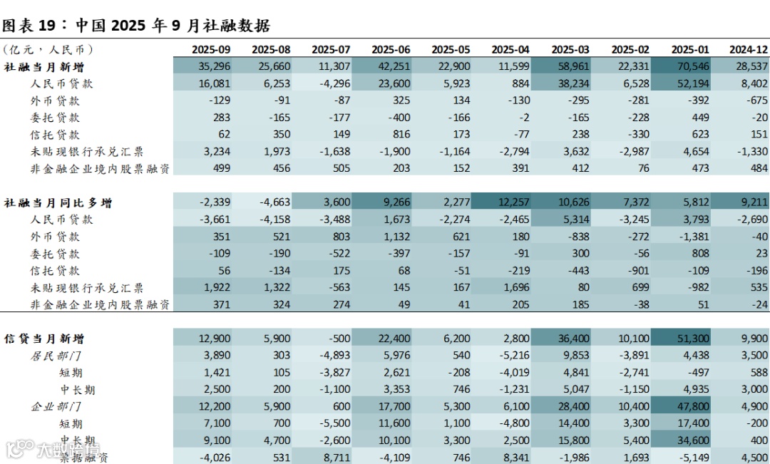 流动性结构改善,9月末M2同比增长8.4%,M1同比增长7.2%,M2-M1剪刀差明显收敛,反映资金传导效率提升。信贷结构呈现积极变化,居民中长期贷款需求略有回升,企业贷款需求平稳,企业和个人的资金活跃度增强,反映出企业生产经营活跃度提升、个人投资消费需求回暖等积极信号。