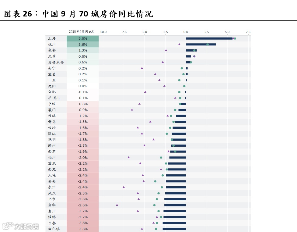 2)供给端,前三季度房屋新开工面积下降18.9%,竣工面积降15.3%、施工面积降9.4%,但9月竣工面积由此前的下降转为增长1.5%,为2024年以来首次转正,显示部分先行指标边际改善。9月房地产市场景气指数录得92.78,较8月下降0.27个百分点。