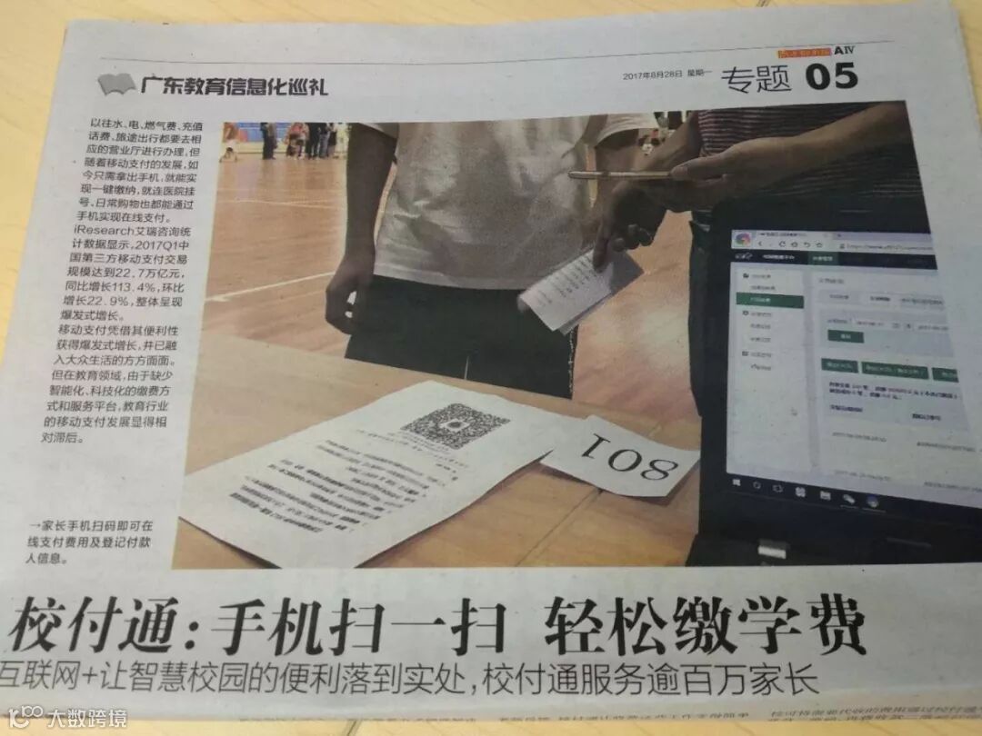 校付通改变校园缴费传统方式的创新能力还获得南方都市报广东教育信息化巡礼专题专访,被今日头条、中华网、中国教育装备采购网、环球网财经栏目、搜狐财经等多个网络媒体转载报道。