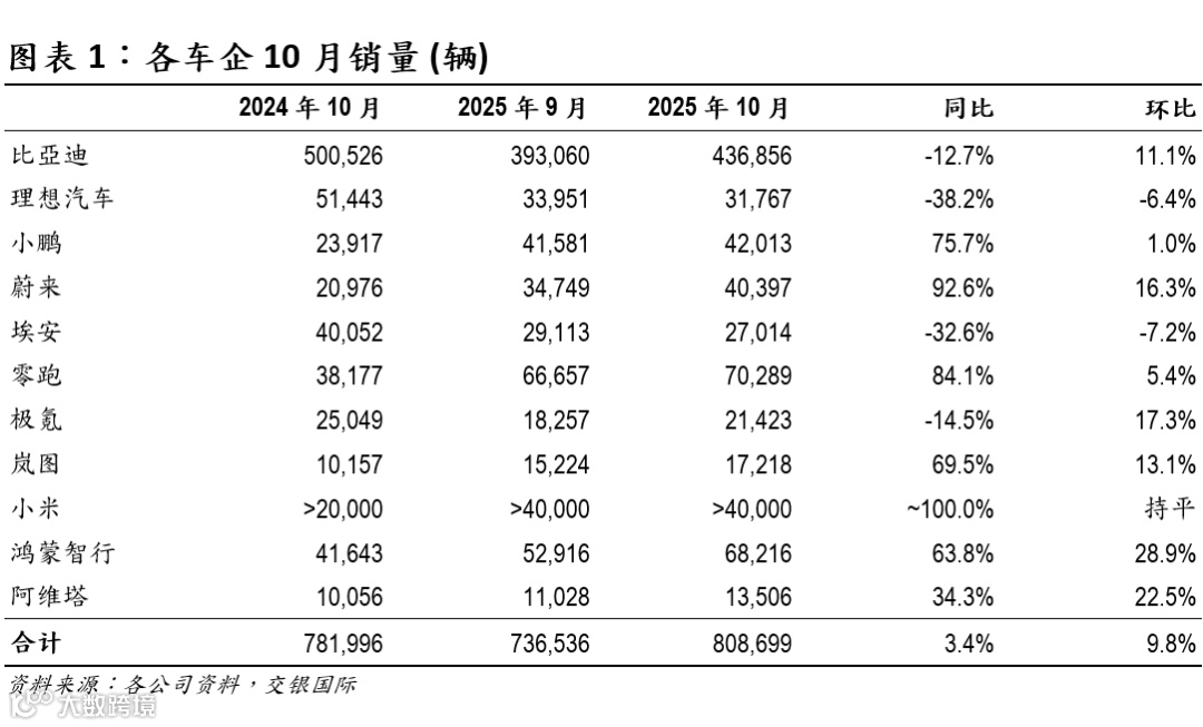 本文节选自交银国际已发布研究报告《10月新能源车销量延续高景气,年底冲量行情可期》(2025/11/03)。