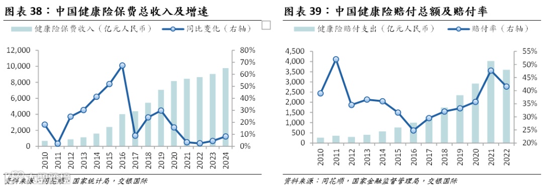 此外,与基本医保的高赔付率相反,商业健康险的赔付率常年在30-50%间徘徊。根据《证券时报》的报道,截至2025年3月5日,124家险企已披露2024年个人短期健康险的整体综合赔付率,中位数为38.2%。较低的赔付率可能和整体业务规模较小、产品设计问题、核保较严格等因素有关。