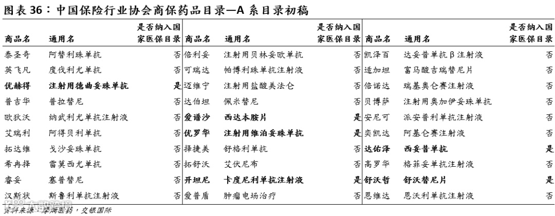 2025年2月,中国保险行业协会组织召开主题座谈会,积极研究商业健康保险药品目录工作事宜,核心目标在于构建全覆盖、多层次的商业健康保险药品目录体系。举例来说,如果按ABCDE级别建立目录体系,A级目录覆盖药品范围较窄,主要适用于惠民保等基础性保险,为用户提供基础医疗保障;B级目录则可满足经济型大众对部分创新药的需求;而C、D、E级目录中的药品清单范围将进一步扩大,如全球范围内的特效药、创新药。随后,协会于3月发布A系目录的初稿,共包括30款药品,大部分尚未纳入国家医保目录。我们预计,医保丙类目录或将在纳入品种和目录体系上有一定相似性。