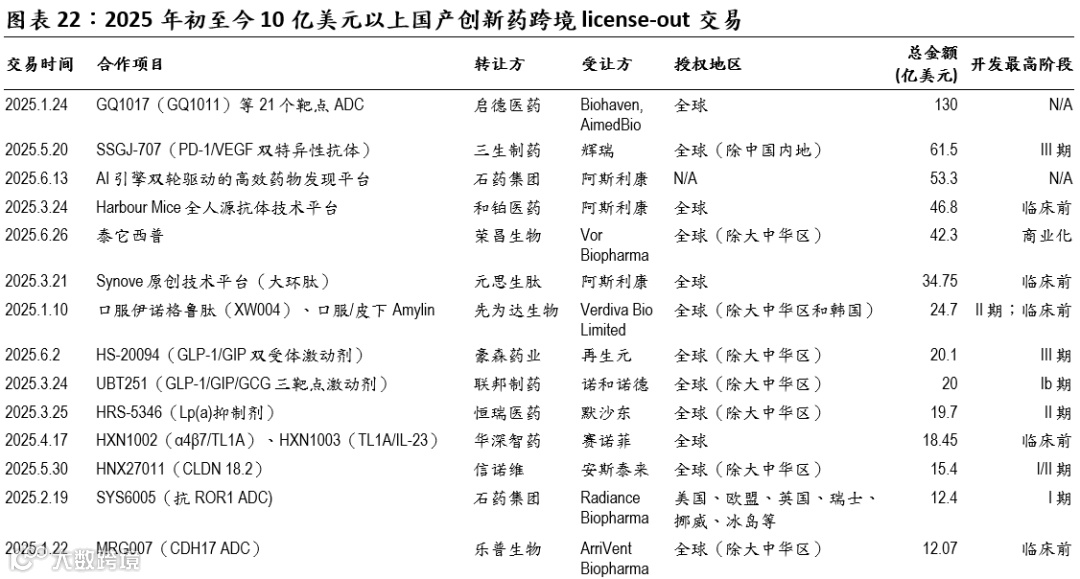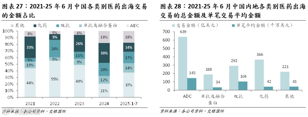 我们观察到创新药出海有以下重要的趋势:1)行业进一步衍生出了NewCo等新型交易模式,并快速发扬光大;2)ADC赛道交易兴趣度最高,双抗/多抗、小核酸/mRNA等前沿技术领域亦存在较多机会,中长期关注老龄化驱动+海外支付条件优异的自免、代谢慢病和显著差异化优势的下一代技术路径。基于当前国产创新药资产储备丰富且交易性价比仍显著、跨国药企(MNC)存在专利悬崖的补缺需求、海外投融资边际改善,我们认为2H25-2026年出海交易热度仍将延续。