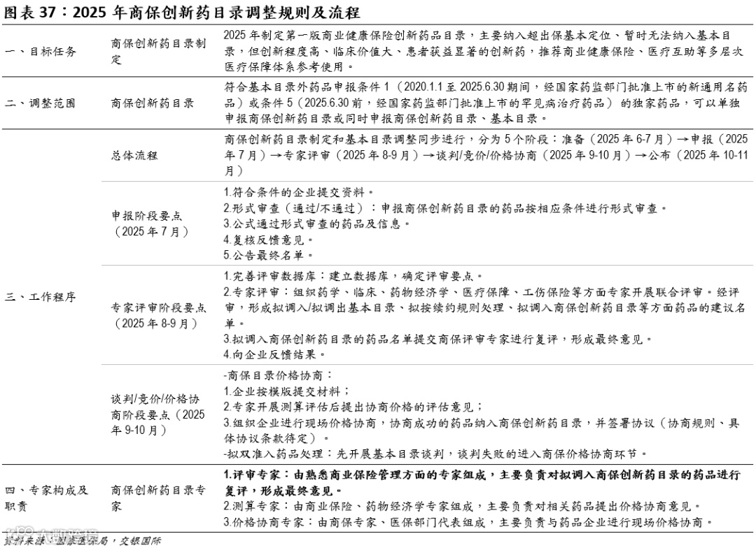 2025年6月,中办、国办发布《关于进一步保障和改善民生 着力解决群众急难愁盼的意见》,提出完善基本医疗保险药品目录调整机制,制定出台商业健康保险创新药品目录,更好满足人民群众多层次用药保障需求。