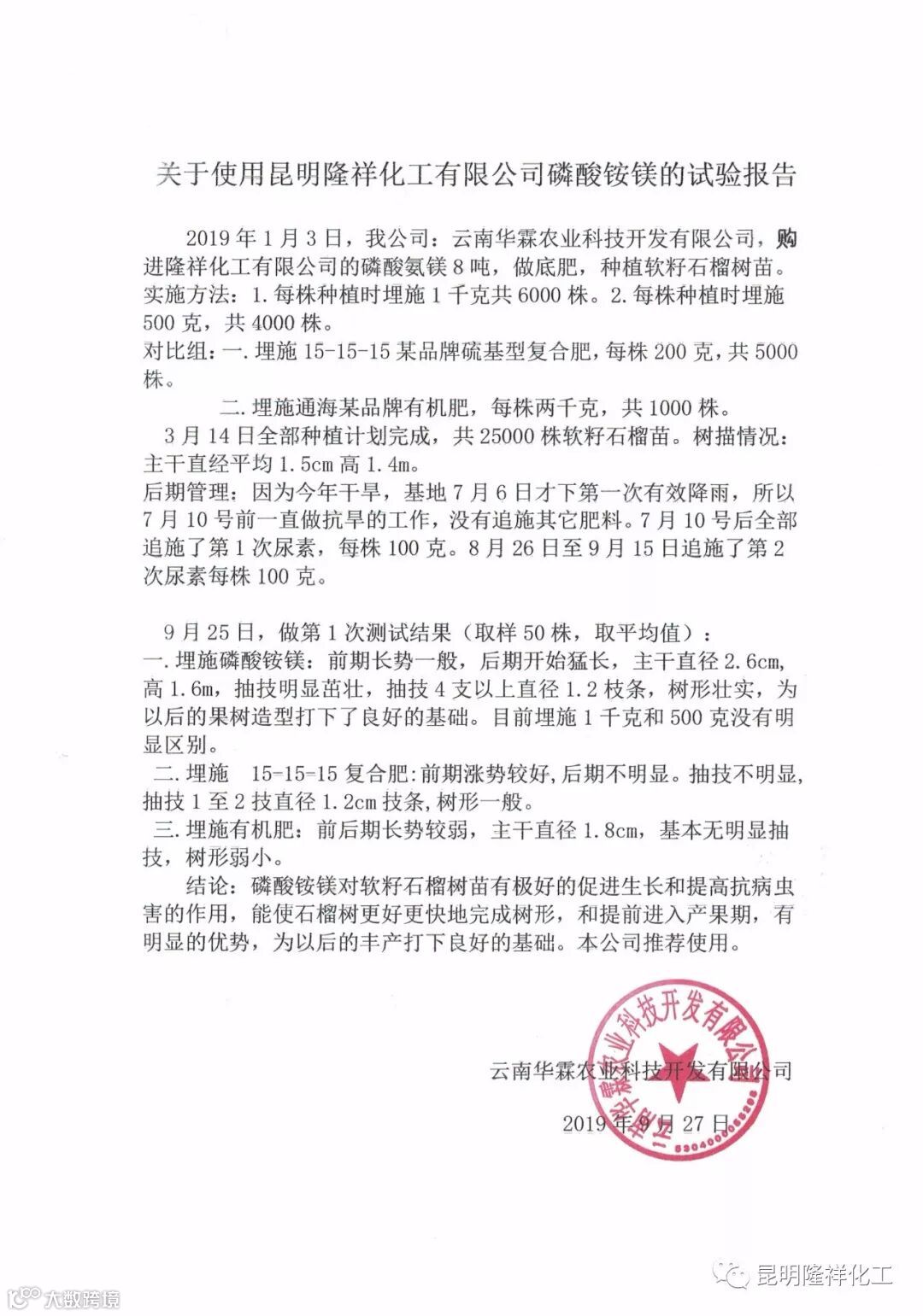 试验报告数据支撑磷酸铵镁比传统肥料优势明显