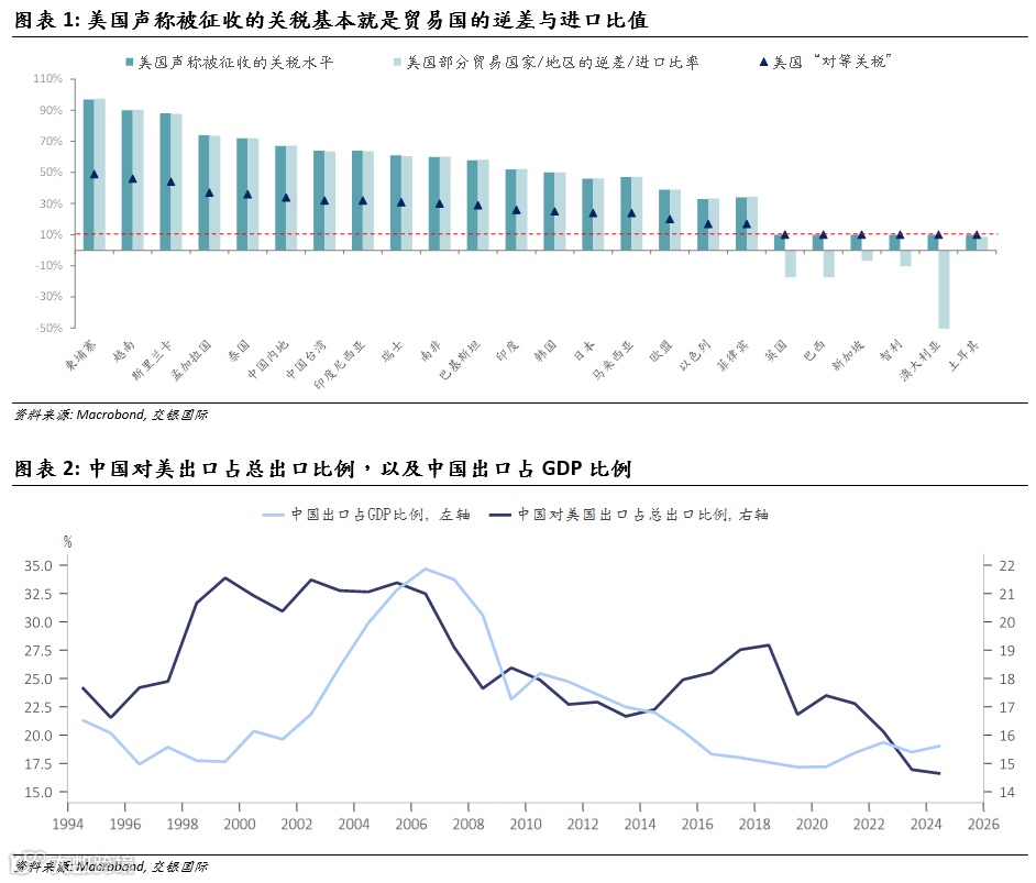 参考上一轮2018年贸易摩擦中的出口弹性,美国此轮对华60%+的关税加征可能导致中国对美出口下降超过30%。鉴于对美出口占中国出口总额的15%,而出口对我国GDP的贡献约为20%,预计此轮关税对GDP的直接影响可能达到约1个百分点。但考虑到此轮“对等关税”涉及全球约60多个国家和地区,总需求仍有不确定性。