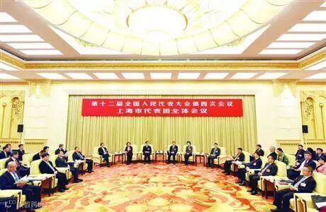 昨日15时,十二届全国人大四次会议上海市代表团在人民大会堂举行第二次全体会议,审议了政府工作报告,并对境内外记者开放。