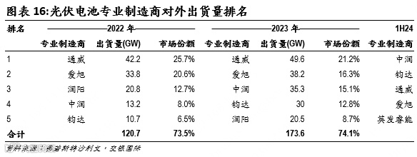 随着A股IPO收紧,中润、润阳两家出货量长期排名前五的专业化电池片企业均在2024年终止IPO,我们认为这也将对产能出清起到积极作用。