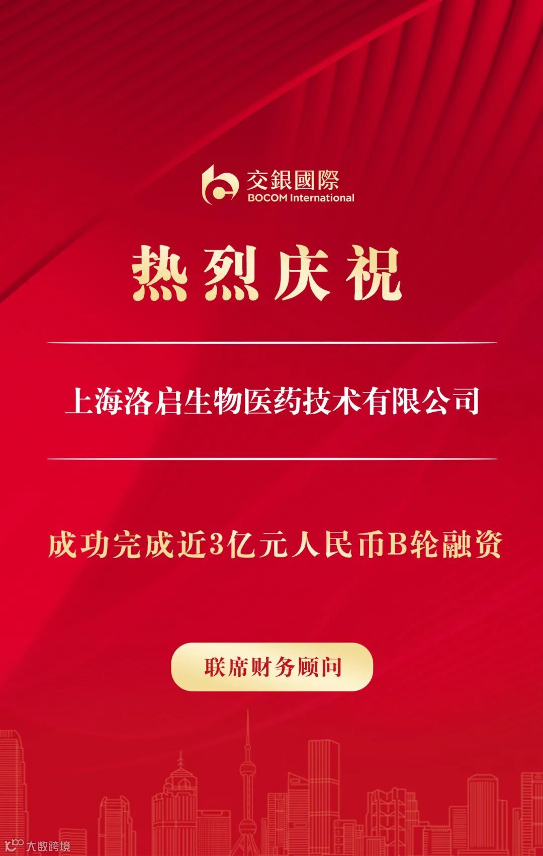 近日,交银国际作为联席财务顾问,助力上海洛启生物医药技术有限公司(“洛启生物”)完成近2亿元人民币B2轮融资,此前,交银国际作为联席财务顾问助力洛启生物于2023年12月完成B1轮融资,公司B轮融资累计近3亿元人民币。洛启生物B2轮融资由启明创投领投,黄埔生物医药基金、九域投资参与,老股东盛迪投资持续加码,募集资金将主要用于推进公司基于“吸入式大分子药物研发平台”自主研发的两款吸入抗体药物(LQ036,LQ043H)的临床II期研究,同时丰富公司在自免领域管线的布局、提升团队实力及进一步补充流动资金。