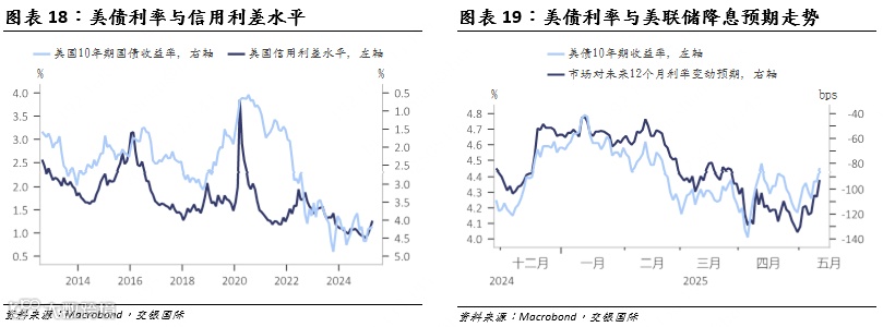 关税风险降低对于美债利率的影响是双向的。一方面,中美一阶段经贸谈判的达成,一定程度上降低了美国的滞胀风险,叠加近期基本面偏韧性,降息预期收窄,对美债利率的方向影响偏上行。另一方面,关税风险的降低也使得此前受损的美远信用风险有所修复,对美债利率的影响则偏下行。因此,美债利率可能继续维持窄幅的波动,对港股影响或偏中性。