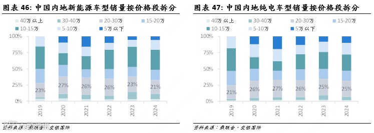 SU7精准切入新能源乘用车市场20-30万元价格段。我们认为,小米SU7的优势不仅体现在产品性能,也体现在对自身产品的精准定位。根据乘联会,中国内地新能源乘用车市场中,20-30万元和10-15万元价格段一直是主力,销量份额基本维持在20%以上;而纯电车型中,20-30万元占比基本维持在25%以上。在20-30万元的价格段,根据中汽数研数据,以2025年前两个月为例,销量排名靠前的纯电轿车只有小米SU7和特斯拉Model 3,而10-15万元主要被比亚迪等厂商覆盖。我们认为小米SU7精准切入适合的赛道,从而为打造爆品奠定良好基础。另外,小米全球智能手机出货量份额已连续4年稳居全球前三,且AIoT平台已连接设备数已超9亿台。我们认为,随着「人车家全生态」战略全面落地,小米在智能手机和家用消费电子市场长期积累的较大量级“米粉”或成为小米汽车的潜在主要消费群体。