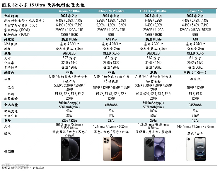持续布局产品矩阵,6,000-8,000元价格段稳步推进。公司目前的产品矩阵覆盖入门级(如红米品牌)到高端旗舰机型,高端机型主要包括小米数字系列和大/小折叠屏系列。数字系列方面,小米14 Ultra(2024年2月发布,6,499-7,799元)、小米15/15 Pro(2024年10月发布,4,499-7,999元)、小米15 Ultra(2025年2月发布,6,499-7,799元)带动小米较为成功地突破6,000-8,000元价格段。折叠屏系列方面,小米MIX Fold 4(2024年7月发布,8,999-10,999元)和小米MIX Flip(2024年7月发布,5,999-7,299元)也分别有对应的高端价格带。值得一提的是,根据管理层介绍,小米MIX Flip 32%的用户来自iPhone用户群,我们认为,小米高端机不断触及更高的价格带有望渗透到更多原iPhone用户群。