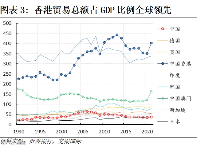 香港是全球最为开放的经济体之一,拥有自由的经济政策并且支持多边贸易制度。根据香港商务及经济发展局,2021年,香港是全球第六大商品贸易经济体,也是全球第二十大商业服务经济体系。香港与20个经济体签订自由贸易协定,与31个经济体签订投资协定。香港近年来与欧美市场的贸易往来活跃,同时在积极开拓欧美以外的海外市场。