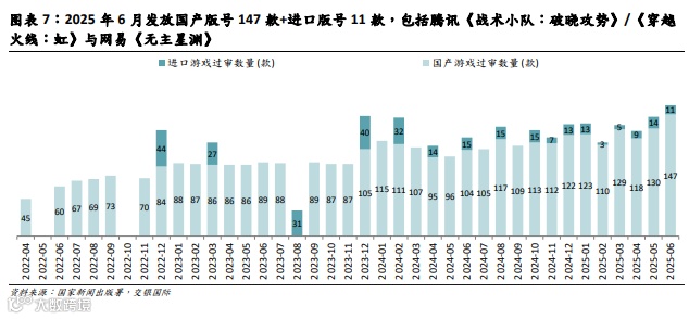 腾讯新游表现亮眼:《三角洲行动》热度持续攀升,6月登顶WeGame热度榜单, STEAM最高同时在线人数环比增5%至16万,再创上线以来新高。MMO生存类新游《沙丘:觉醒》6月10日发售,据VG Insights,截至7月2日,在STEAM平台售出130万份,收入接近5200万美元,STEAM最高同时在线人数达19万(STEAM Chart)。