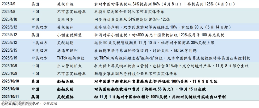 本文节选自交银国际已发布研究报告《关税博弈升级,但缓和仍大概率可期》(2025/10/13)。
