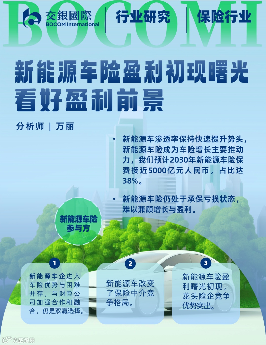 本文节选自交银国际已发布研究报告《新能源车险盈利初现曙光,看好盈利前景》。
