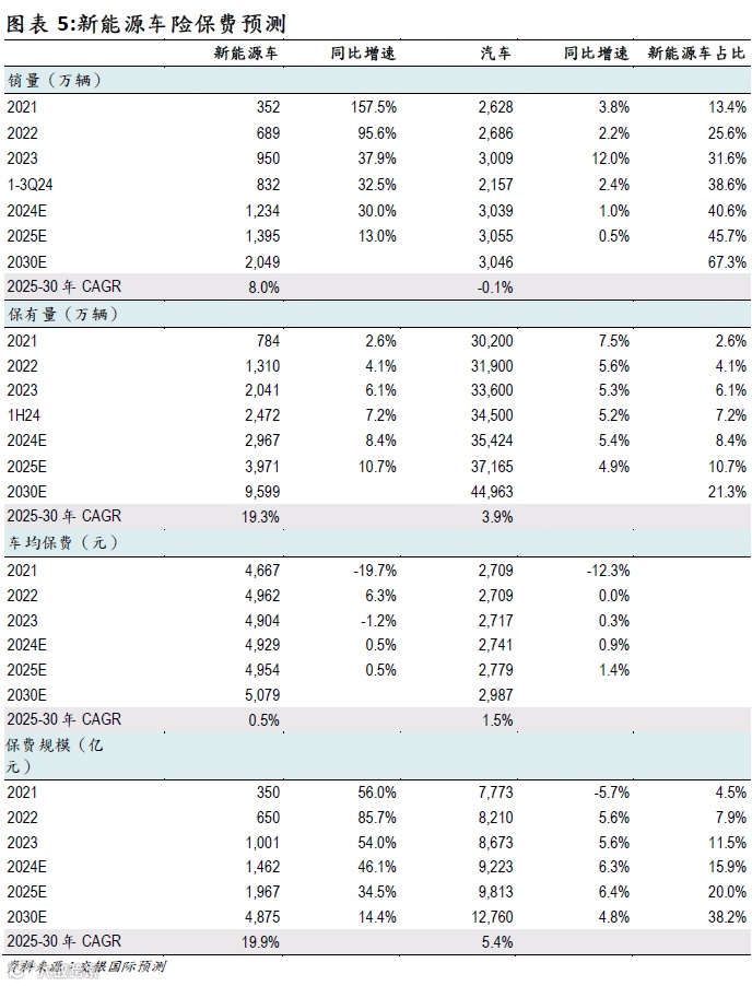 我们预计到2030年新能源车险保费将接近5000亿元,占车险比重接近40%。