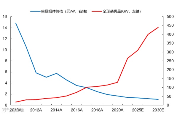 在此背景下,光伏装机量即使实现“十年十倍”,按照组件出货价格计,光伏行业的营收也难以实现“十年十倍”。