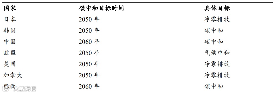 图表:主要国家碳中和时间