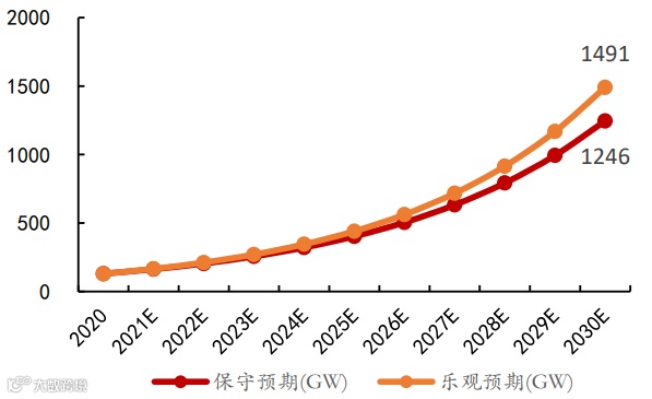 图表:2030主要国家装机量需求合计预测