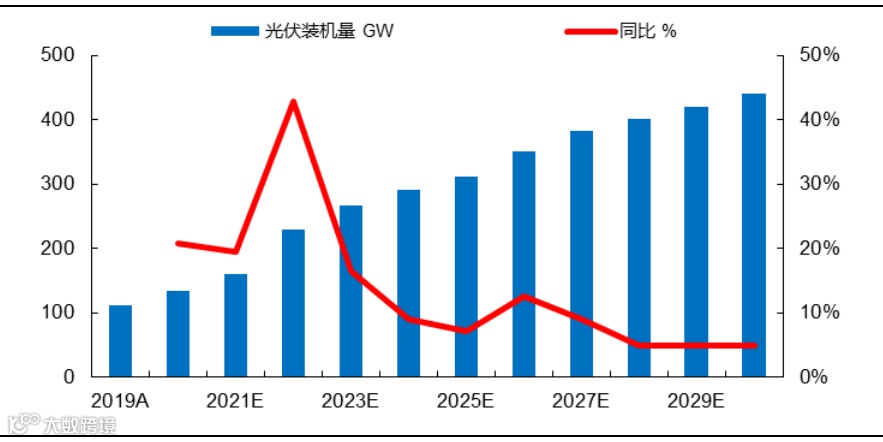 图表:未来十年光伏装机量年均复合增长率