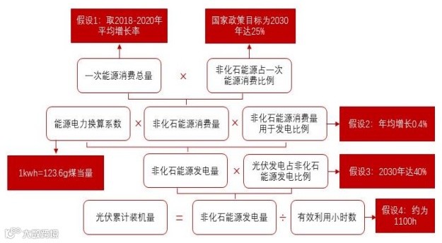 图表:光伏2030装机量需求量计算逻辑