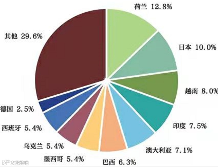 图表:中国光伏组件出口情况(2019年)