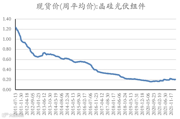 图表:光伏组件现货价走势(美元/瓦)