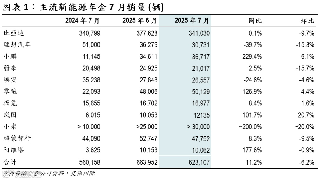 本文节选自交银国际已发布研究报告《7月传统淡季下新能源车市温和增长;预计8月环比改善》(2025/08/04)。