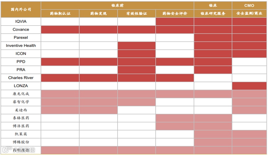 我国CXO行业代表公司主要包括药明康德、康龙化成、泰格医药和凯莱英等,其中药明康德、康龙化成是一体化CXO服务商,业务覆盖“CRO+CDMO”;泰格医药侧重临床CRO,凯莱英侧重CDMO。